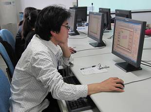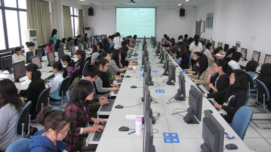 早上8:00比赛正式开始。为保证比赛公平性,各专业参赛组分别以同一套教材为设计内容。每位选手依据对教材的不同理解在4小时内完成教案设计,包括主题、教学目的、课时、教学重难点、教学过程、板书设计等,不足百平米的机房内键盘敲击声此起彼伏。