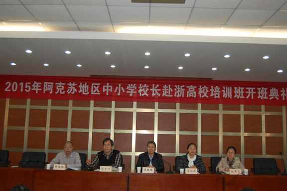 吕关心副院长代表浙江师范大学对出席开班典礼的各位领导、各位学员表示热烈欢迎。他向学员们详细介绍学校发展概况,尤其是近几年人才引进、科学研究、社会服务以及学科发展等进展情况。他指出,近几年来浙江师范大学承担了“领雁工程”、浙江省中小学教师全员培训、国培计划、阿克苏地区大学生来浙高校培训任务,形成了“立足省内,辐射中西部,面向全国”的培训规模。学校非常重视阿克苏校长培训项目,专门成立了项目指导小组,省师范处、继续教育学院和江南娱乐app网站官网 学院就本次设计方案多次召开论证会和协调会,希望本次培训能成为对口援助的样板,为今后培训提供更多的经验。