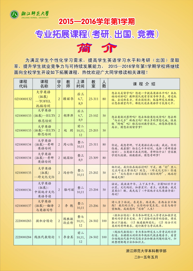 2015-2016学年第1学期专业拓展课程(考研、出国、竞赛)简介