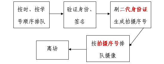 (4)本次摄像分组进行,请各毕业生看清楚班级拍摄开始的时间和所在教室(具体分组及时间安排见附件),按分组安排提前30分钟携带二代身份证到场外排队等候,并严格按专业、学号顺序入场拍照。
