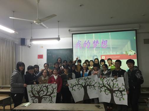 在大家颇生感慨之时,第三个环节已悄然进行,主持人让同学们闭上眼睛,去想象自己一程一程的未来,然后让每个人都填充自己的梦想之树。在同学们都带着对未来的憧憬,欣喜地填充属于自己的梦想之树后,主持人又引领着同学们分享了自己的梦想。当同学们静静地听着每个人的梦想时,一种开心且感动的感觉不禁油然而生。