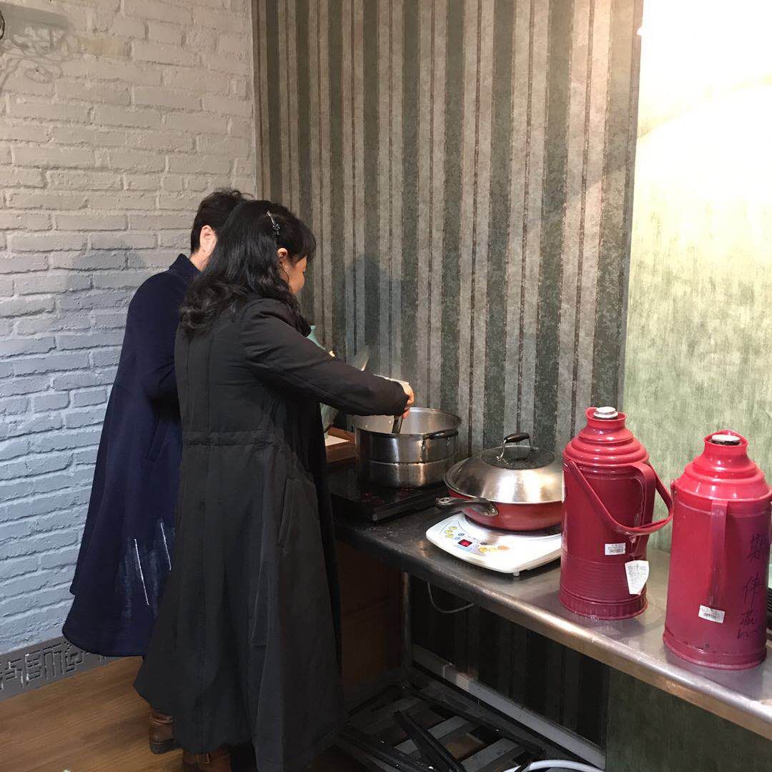 正是晚餐时分,同学们齐聚教工小家,两位老师亲自下厨,为同学们现煮饺子。除了美味的饺子,更有黄老师亲手做的糕点和叶老师带来的义务麻花及橙子。享受着热气腾腾的饺子和美味的点心的同时,同学们开心地交流聊天,其乐融融,整个房间温暖十足。