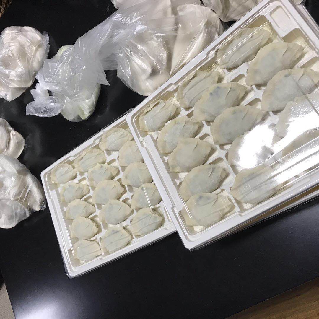 这300多只饺子是黄老师从前一天晚上7点到凌晨亲自擀皮拌馅包成的。为了照顾班上两个新疆同学的口味,黄老师还贴心地在今天中午包了韭菜馅的饺子。