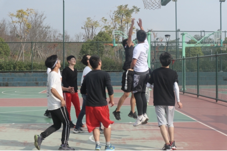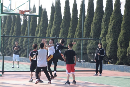 根据赛前的抽签结果,第一天对阵情况:研一vs 本二,博士vs研二。场上的队员在一开始的比赛中就不曾懈怠,球场一边是研一与本科大二的激烈争战,一边是博士生与研二生的奋力一搏。这一边,研一突破上篮频频得手,大二队员也愈发神勇,比分交替上升;那一边,博士生与研二队员双方抢球、防守、进攻,严守硬对,激烈争夺,赛出了风格,赛出了水平。最终,第一天的比赛,研一与大二场以30:21告终,博士与研二场以27:50告终。