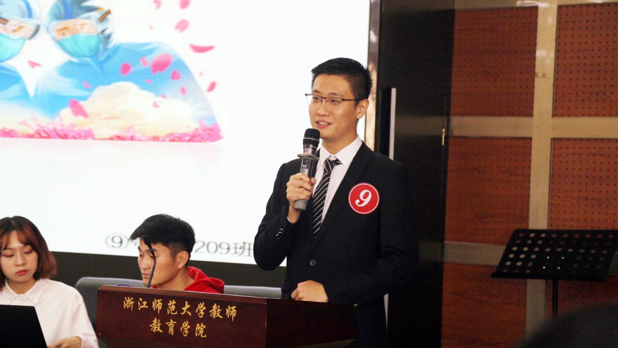 后疫情时代,泥沙俱下,风险与机遇并存。9号选手胡林涛从时代热点出发,讲述了作为时代新青年的责任与作为。台下的观众们听后也深受感染,报告厅内掌声轰动。