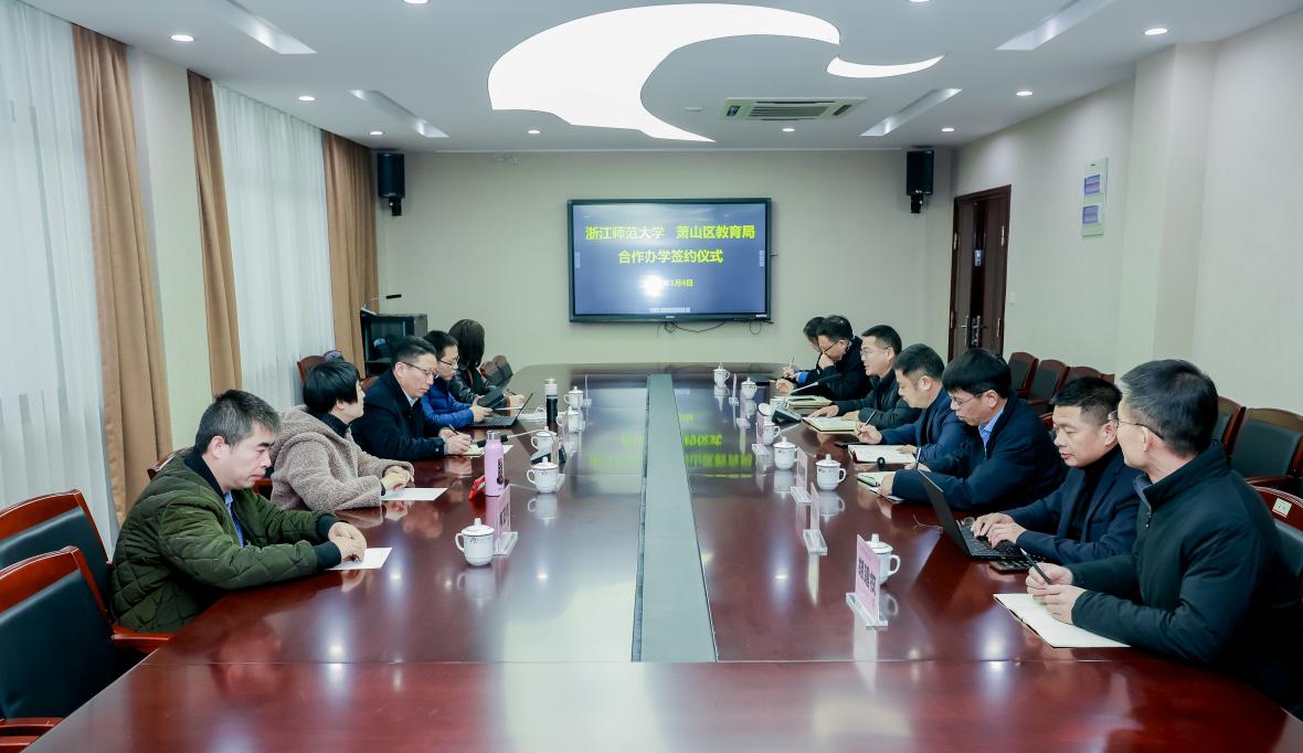 1月4日,浙江师范大学与杭州萧山区教育局第二轮合作办学协议在浙江师范大学附属金山小学签订。浙江师范大学直属学校与合作办学管理处处长叶志雄,江南娱乐app网站官网 学院党委书记、田家炳德育研究中心常务副主任查颖,江南娱乐app网站官网 学院院长助理李云星,萧山区教育局副局长吴金炉,城区教育指导中心主任倪柏根,浙江师范大学附属萧山二中校长沈朝晖、副校长胡建权,浙江师范大学附属金山小学校长徐明、副校长高神爱等出席签约仪式。签约仪式由萧山区教育局高中和义务教育科科长董柯锋主持。