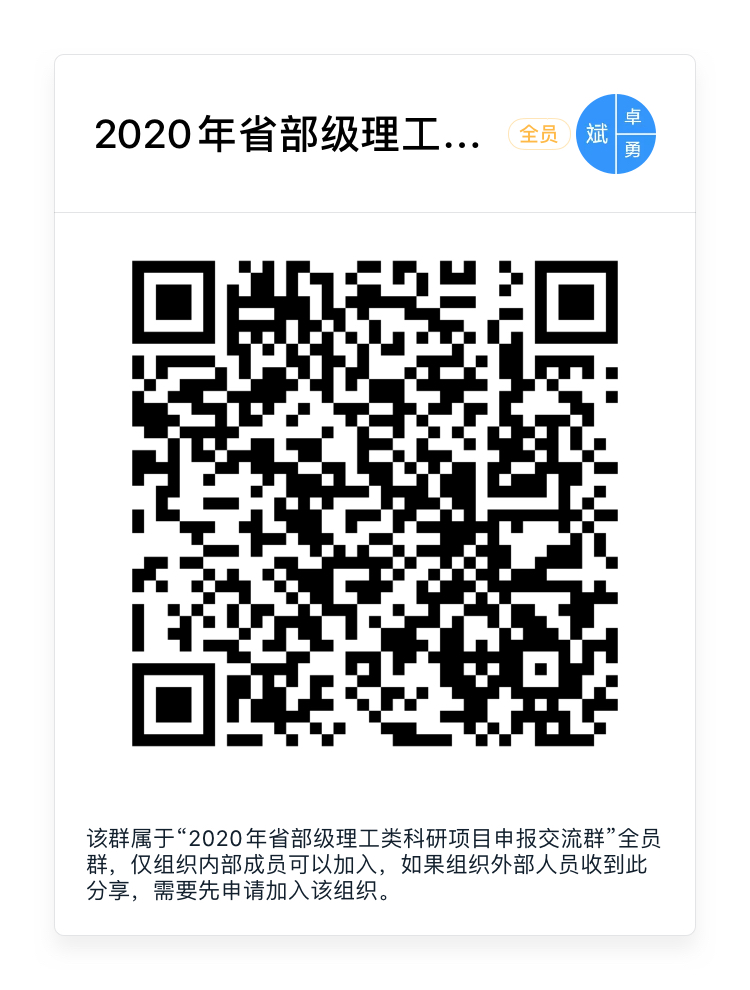 我院已开通理工类、人文社科类省部级项目申报交流群,请分管科研领导、科研秘书、项目申请人积极扫码加入进行交流讨论。