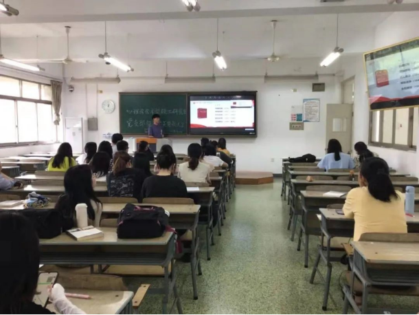 5月31日,心理学学术型硕士研究生党支部18级党小组组长陈骁以“学四史、守初心、担使命”为主题,在5幢202教室给全体支部党员上了一节生动的党课。