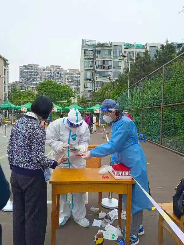 行政教工党支部书记彭年强,党员教师施丽君、查亮亮、黄璐、陈秋羽、刘玉娟、喻松等踊跃报名,积极行动,暂时告别家庭,留守学校,连续多日战斗在学校疫情防控第一线,承担着防疫物资发放、核酸检测信息采集、现场秩序维护等工作。