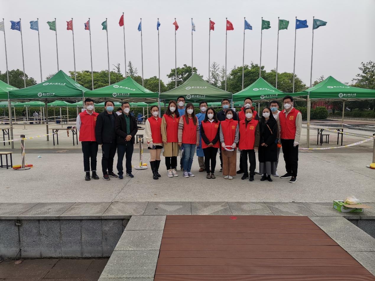 在金华“4·15”疫情出现之后,浙江师范大学江南娱乐app网站官网 学院张天雪、贾磊、梁萍儿、陈伟强、朱剑、查亮亮等党员教师们在得知学校需要核酸检测引导、信息录入等志愿者时,第一时间报名返校参与防控工作。