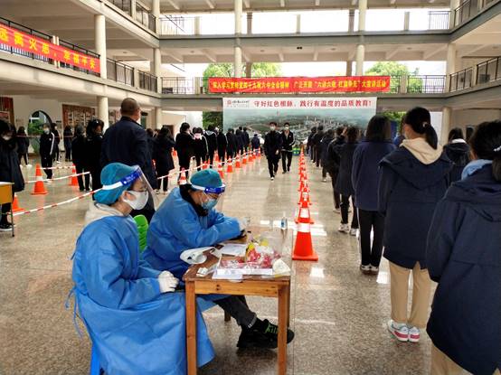 春意盎然的四月,战“疫”又一次打响。自金华“4·15”疫情发生,婺城区疫情防控指挥部第一时间开展全域大规模核酸筛查。为筑牢疫情防线,守卫校园平安,宾虹高级中学迅速展开核酸检测、人员排查、后勤保障等一系列战疫工作,全校师生勠力同心、携手同行。