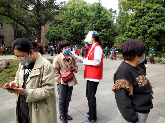 穿上志愿服饰,维护现场秩序,引导出入路线,保持安全间隔