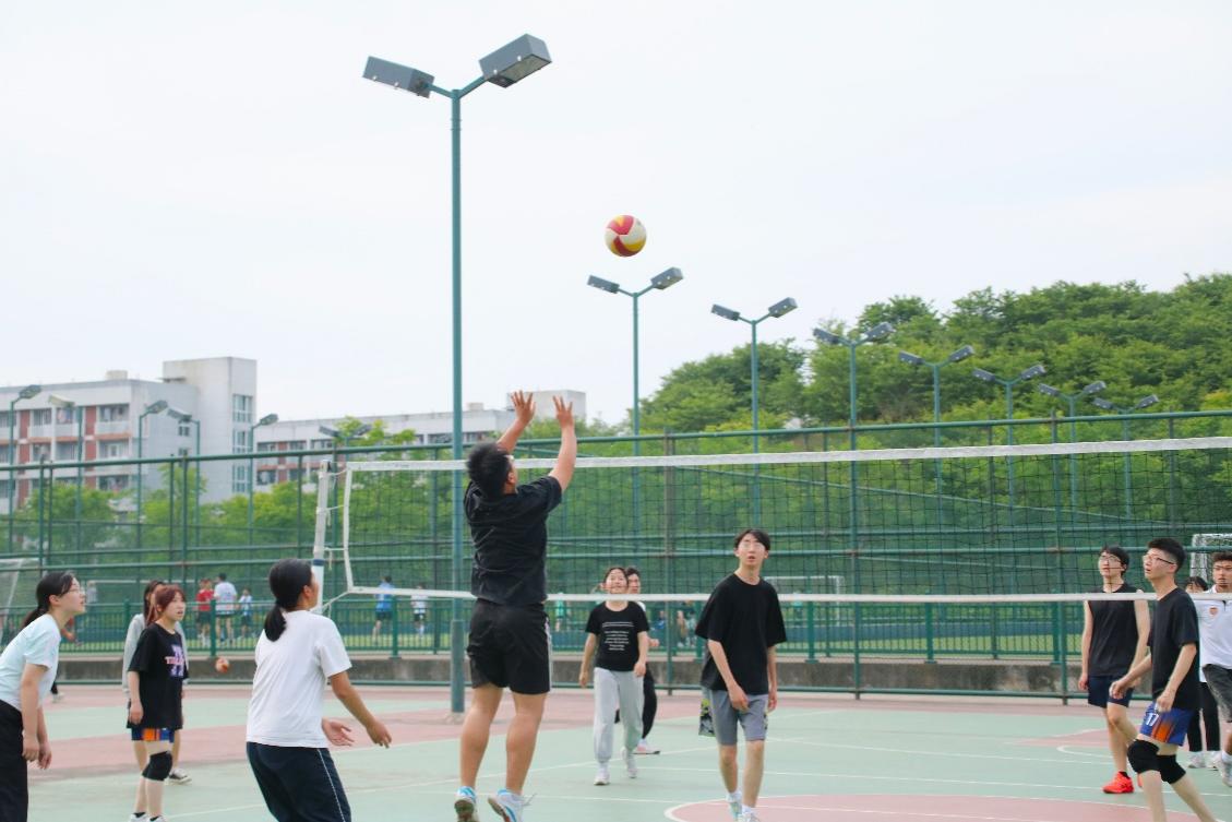 风扬起的细小颗粒折射着光,青年永远是运动场上来来往往的人目光的焦点。为丰富校园文化生活、增进学院友谊,5月7日,江南娱乐app网站官网 学院与地理与环境科学院为我们呈现了一场酣畅淋漓、精彩纷呈的友谊排球赛。两队把握住每一次的发球与接球机会,点燃了赛场上的激情与热血。