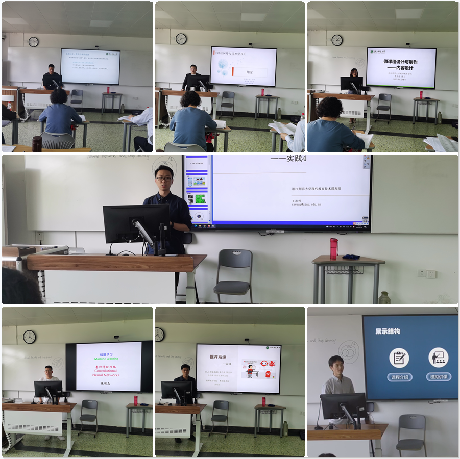 教育技术学系教研室和课程系教研室的青年教师教学展示活动在16-317进行。首先是课程论专业的邹逸老师进行展示,紧接着教育技术学专业的六位青年教师李明、李笑樱、王希哲、张明焱、蓝敏、黄琼浩按序进行了课程章节的教学展示。各位评委对老师们的表现也给出中肯的建议。徐展斌老师认为老师们表现可圈可点,但是有些课程的内容比较难懂枯燥,需要更加直观,设计更加容易接受的形式向学生讲解,可以增加学生的学习自信心。李鸣华老师指出老师们在上课要注意突出重点,表情要更加丰富,课件制作上还要多下功夫。黄立新老师指出老师们对课堂任务的安排还需更加合理,有些可适当安排课外自主完成,更好发挥学生学习的主观能动性。卢伟老师指出老师安排的某些课堂任务的步骤须更加清楚和详细。