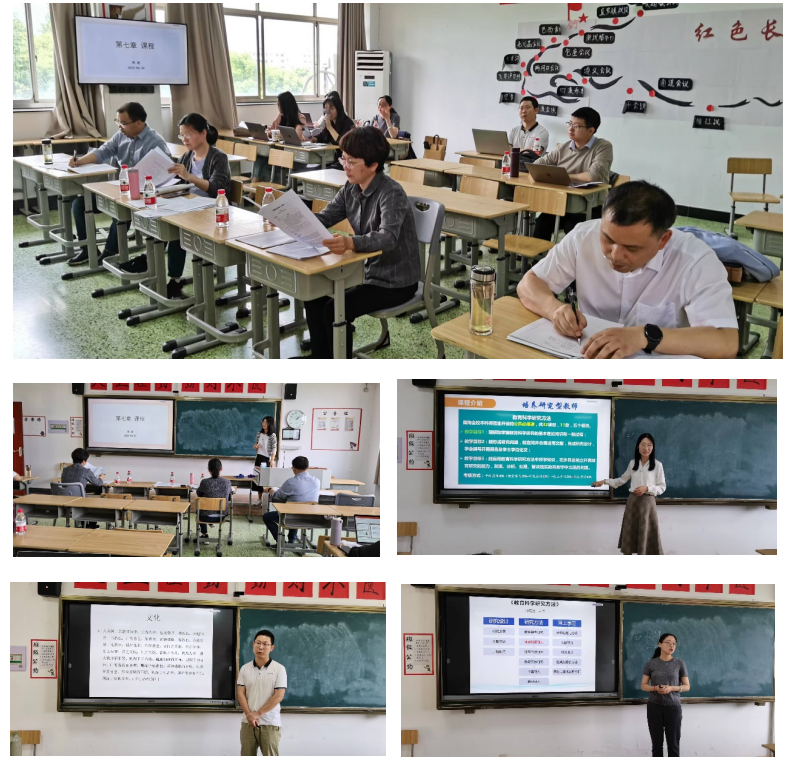 教育学专业教研室的八位青年教师林凌、王洋、周森、刘小柳、石亚兵、严凌燕、李佳宇、杨晓娟逐一进行了教学展示,先进行2分钟说课,再开展模拟上课。大多数青年教师准备充分,能较好地抓取课堂主题,将知识点充分展开,对理论进行通俗易懂的诠释,同时考虑到课堂教学中的课程思政元素,在讲述中能穿插学生讨论和互动,仪态大方、循循善诱,课堂气氛活跃,内容首尾呼应、框架完整紧密。