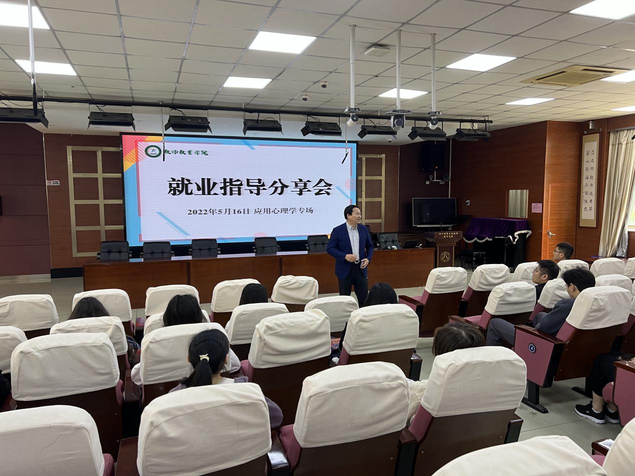 2022年5月16日,江南娱乐app网站官网 学院于17-112报告厅开展了2022届未就业本科毕业生指导帮扶活动,应用心理学、教育技术学专业共40余名本科生同学参加。心理学系主任李新宇,心理学系教师王成、詹沛达、叶群,教育技术学系主任张家华,教育技术学系教师、毕业年级班主任毛刚、何文涛,毕业年级辅导员张文潇与会指导。