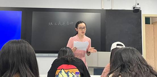 选手模拟上课环节结束后,评委代表吴焕老师作总结点评。吴老师提出素养是基础,钻研更重要。她充分肯定了参赛研究生的文本解读能力与课堂驾驭能力,并根据选手今天的表现提出三条建议:一要增强文体意识,二要提高板书思路清晰度,三要加强课堂推导逻辑性。