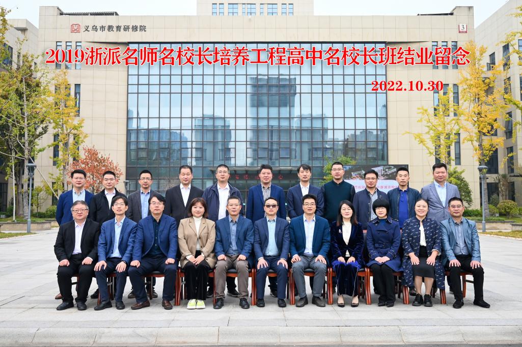 2022年10月30日上午,在疫情背景下,砥砺研修三载,2019浙派名师名校长培养工程23名高中校长在义乌教育研修院6楼报告厅顺利结业。浙师大继续教育管理处副处长徐建华出席结业典礼并讲话,结业仪式由浙师大江南娱乐app网站官网 学院社会服务中心主任杨光伟主持。