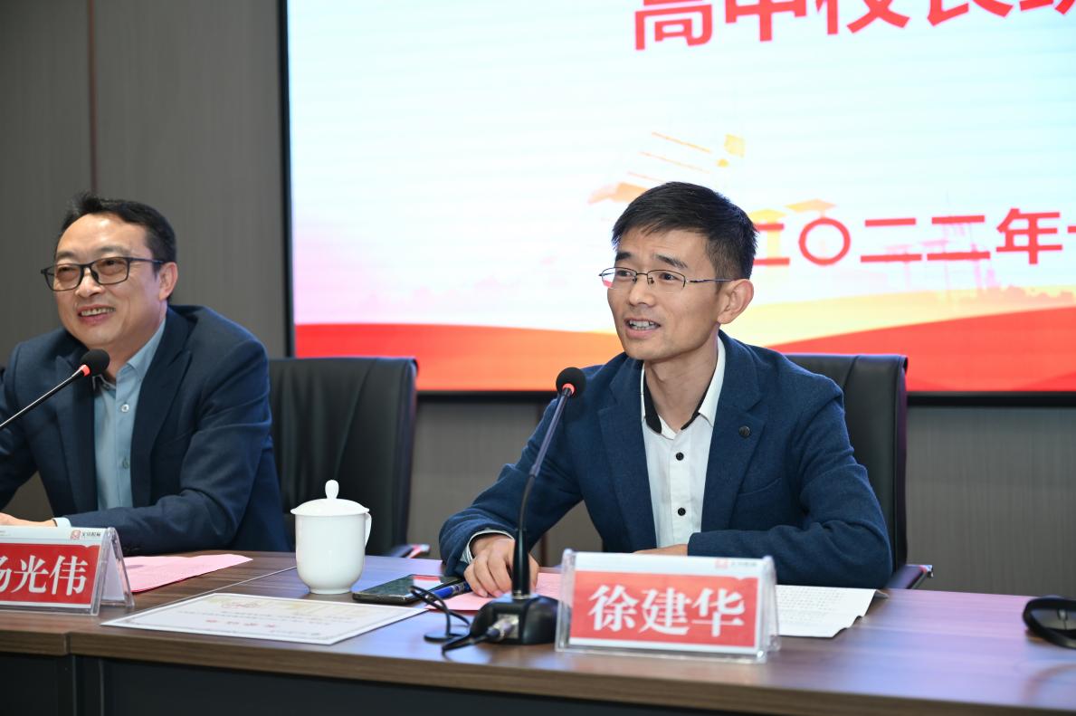 典礼开始,十分钟的结业视频带校长们回顾了培训研修走过的丝丝缕缕。徐建华副处长致结业贺词,他表示三年来国内疫情多点散发,多地频发,2019浙派高中名校长克服疫情困难,圆满完成省厅规定的培养目标,学员们在研修期间成绩斐然,义乌市教育研修院的陈向明院长被评为特级教师,杭师大附属中学陈利民校长获得浙江省春蚕奖,不少校长从副职升为正职。同时对浙江省教育厅的大力支持、项目负责人杨光伟博士及其团队的辛苦付出以及在座校长的积极参与致以感谢。徐建华指出,浙派名师名校长培养工程深受浙师大重视,作为连接基础教育的重要纽带,该项目能让更多名师通过开设讲座、授课等形式来指导、帮助师范生的培养,整个培养过程共生互利。最后他提出希望:希望各位校长继续参与并支持浙师大江南娱乐app网站官网 学院的各项工作。