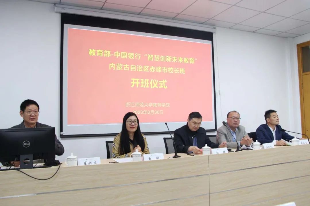 3月30日上午,教育部—中国银行“智慧创新未来教育”万名中小学校长和教育主管部门负责人培训项目(内蒙古赤峰市)开班典礼在17-718教室举行。教育部中小学校长国培办、国家教育行政学院教学与研究部主任郭垒教授,江南娱乐登录测试 院长黄晓教授,内蒙古自治区赤峰市教育科学研究中心教育信息化发展研究室谭明凯主任,项目首席专家、浙江师范大学智慧教育研究院院长周跃良教授,学员导师以及来自赤峰市12县市区的50名学员参加了开班典礼。