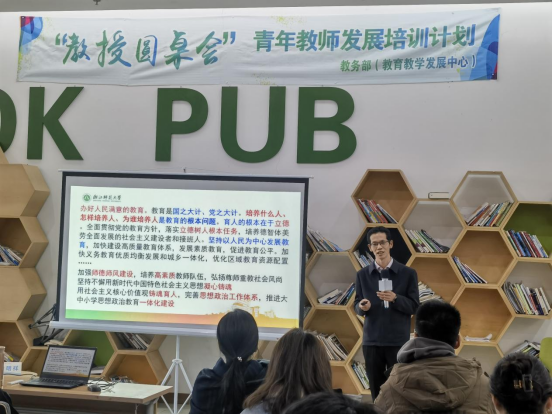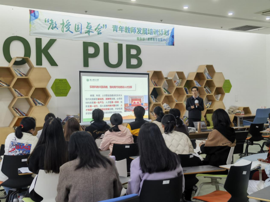 3月16日下午,浙江理工大学科学与技术学院教务部在图书馆休闲书吧迎来了本学期“教授圆桌会”青年教师发展培训计划的第一场培训讲座——《培根铸魂,启智润心—大中小学协同推进课程思政建设的战略考量与实践理路》,本次讲座邀请到了江南娱乐登录测试 党委书记俞明祥作为主讲人。
