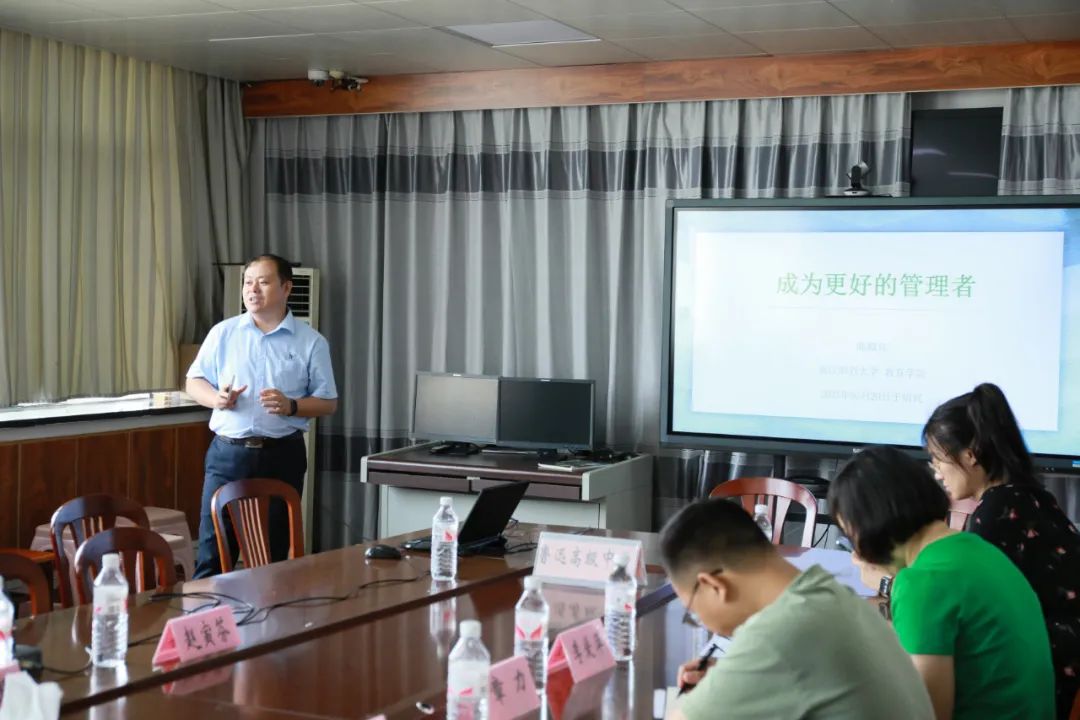 陈殿兵博士作了题为“成为更好的管理者”的专家报告。讲座从三方面内容展开:认识我们的学生、了解我们的育人目标以及应对的策略与方法。讲座伊始,他指出,管理的根本在于对于学生的认知,教育管理者要随着学生生活和学习的时代、社会经济的变化而变化,从新的视角上正确认识学生,了解学生的需求;其次,管理者从问题出发即“我们要培养什么样的人?”来阐述我们的育人目标;为此,陈老师提出六点策略:多途径了解学生、构建新型师生关系、换位思考、给学生选择权、多提供正能量以及反思新型家校关系。报告从学生视角出发,贯彻“以学生为本”的思想,对管理者提出了有效的建议和策略,对有效助力管理者自身素质的提升具有积极意义。