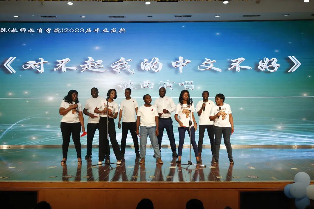 留学生们在动感的节奏中带来歌曲《对不起我的中文不好》,告诉大家虽然他们的中文不好,但是不影响他们表达对学校、学院的热爱和留恋。