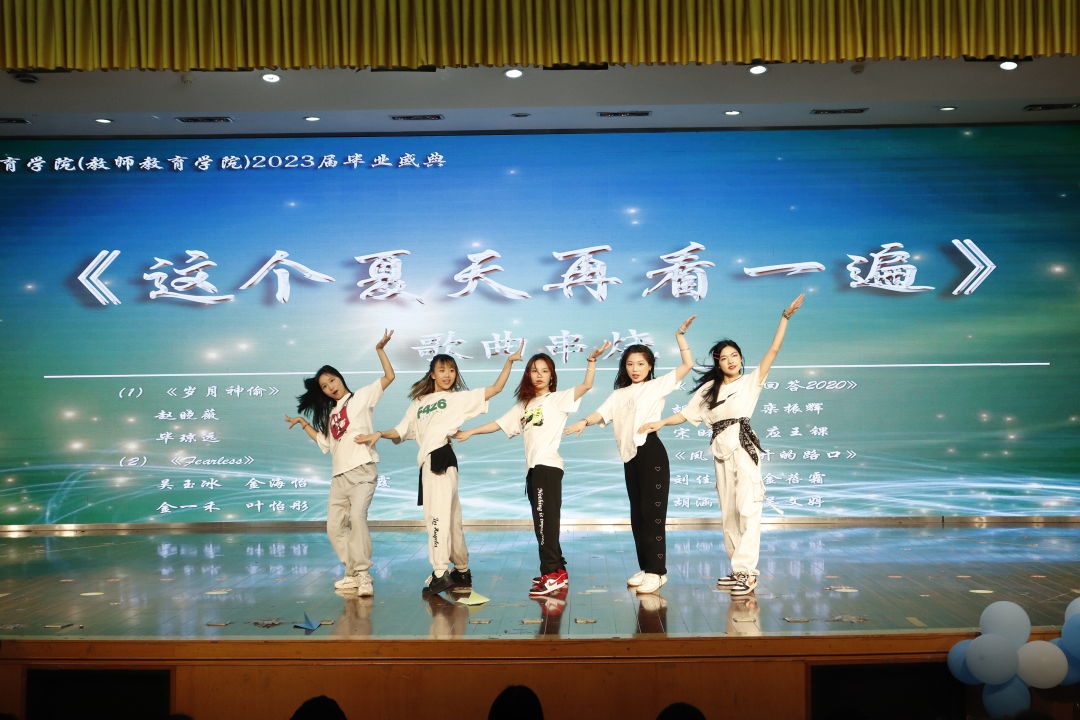 研究生毕业班同学表演了精彩的歌舞串烧《这个夏天再看一遍》,交织成关于浙师生活的满满回忆。