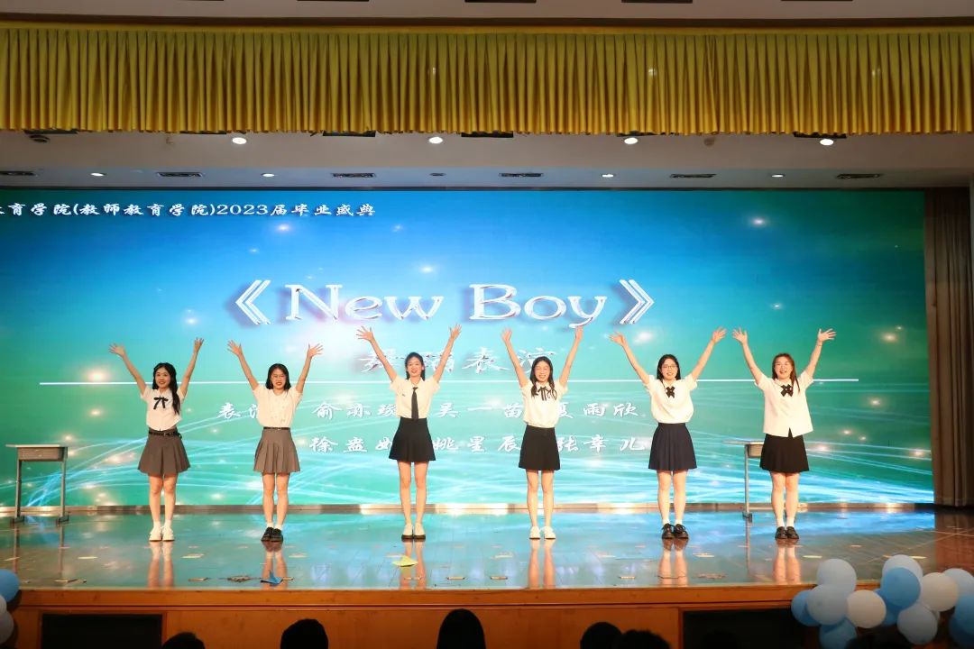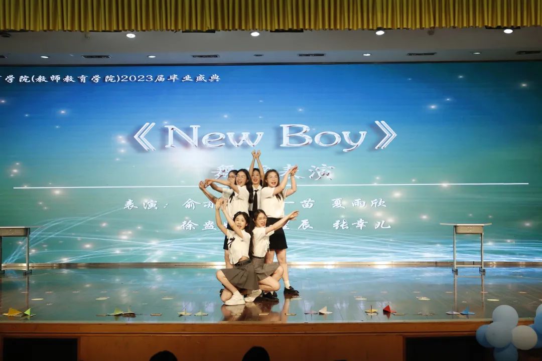 本科毕业班同学带来了舞蹈《New Boy》。灿烂的笑容、飘扬的发丝、舞动的裙摆,组成了这支青春活力的舞蹈,祝福所有毕业生毕业快乐。