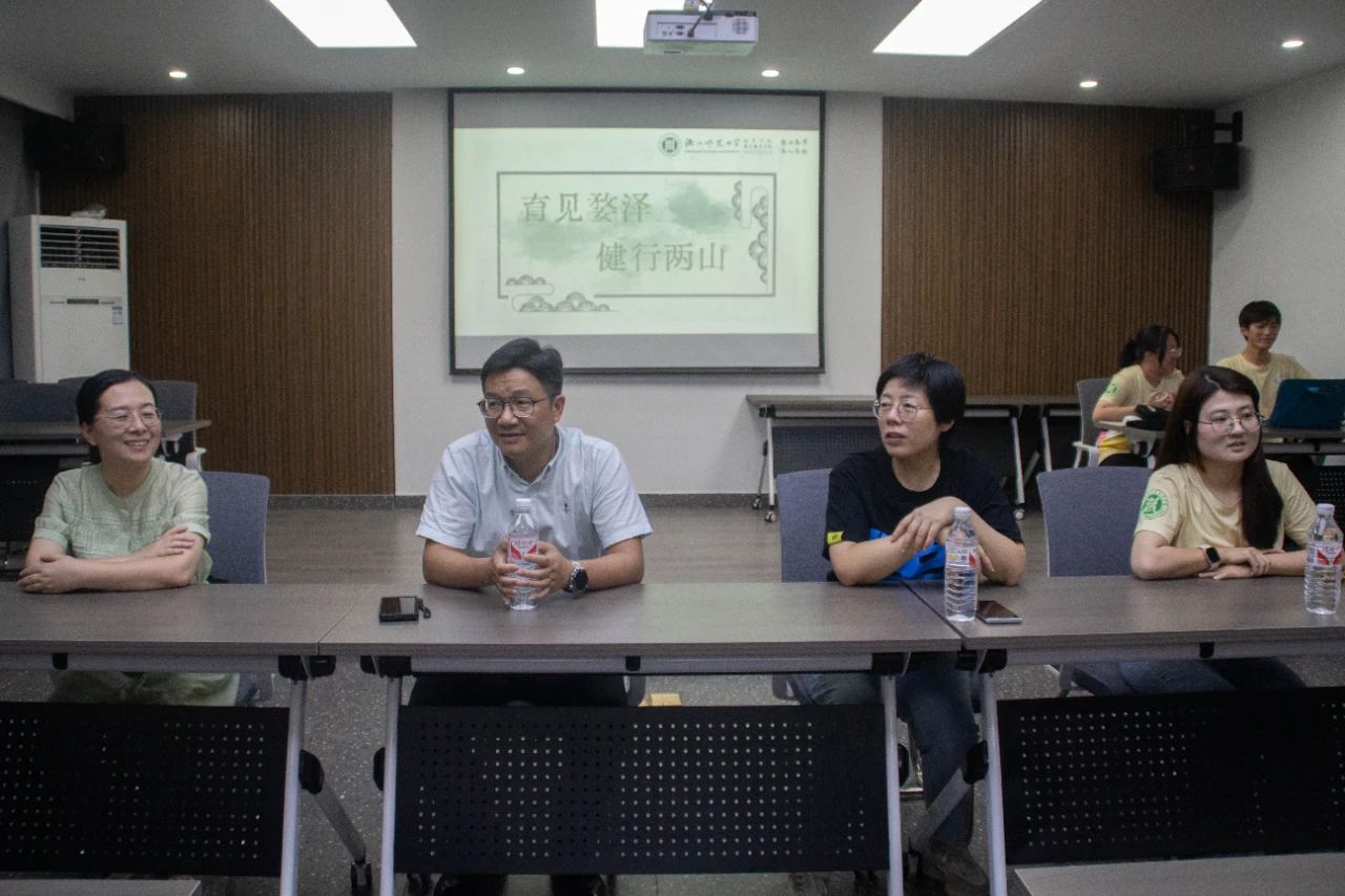苏煜发表讲话,他充分肯定了实践队的前期工作成果,并对后续活动进行指导。第一,沉潜文化矿脉,铺展乡村蓝图。新昌桥村依托白沙溪三十六堰,具有浓厚的文化底蕴。实践队要深度发掘新昌桥村的历史文化脉络,谋求创新点,探索新路径,围绕当地“康养文化”特色,进行精准调研。第二,深植乡野课堂,浇灌理想之花。他希望队员们充分利用新昌桥村提供的丰富素材和良好条件,在帮助孩子们开阔视野、学习新知识和技能的同时,通过初为人师的体验进一步坚定教育理想,厚植教育情怀。第三,铭记安全首位,践行节俭良俗。他提醒队员们,安全无小事,责任重如山,同时要对村里心怀感恩,以自己的身体力行、率先垂范,弘扬勤俭节约之风。