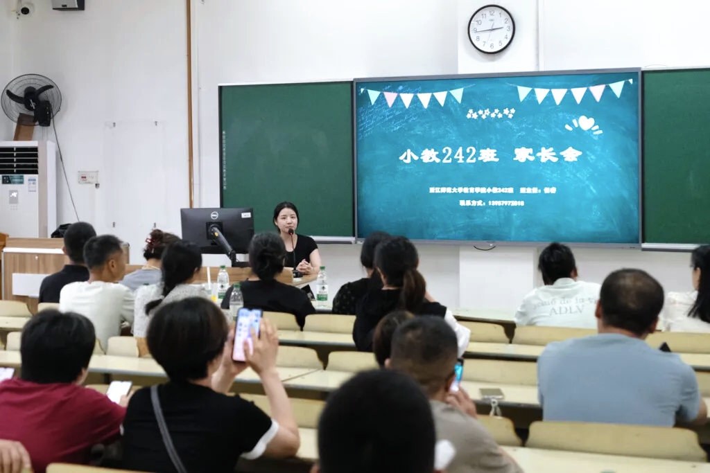 王良辉从人才培养的基本条件和核心目标两个维度出发,介绍了学院的本科教学工作。他指出,在数字化教育的新浪潮下,未来教师应成为具备研究和创新能力的复合型人才,在此过程中,家庭亦需要持续为学生提供养分。他期望家长们经常向学院提出宝贵的意见,共同促进学生的成长。