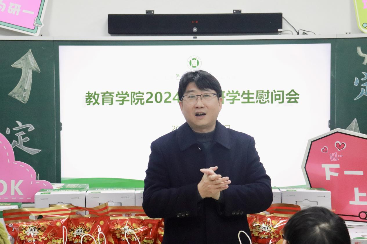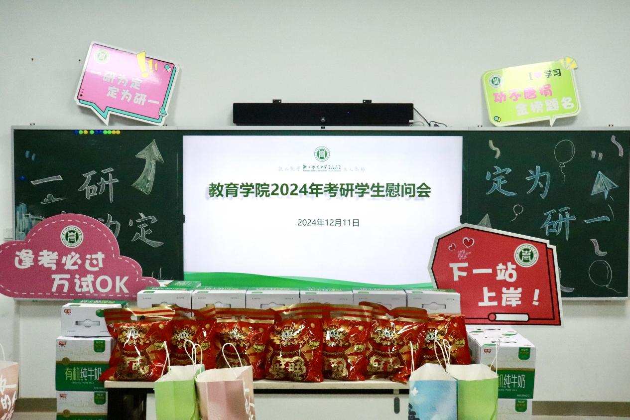 功不唐捐,玉汝于成。为给奋力冲刺的考研学子送去温暖与力量,教育学院于12月11日下午在17幢112多媒体教室举行“一研为定,定为研一”考研慰问活动。副校长兼教育学院院长林一钢,教育学院党委书记苏煜,衢州学院江南娱乐app网站官网 学院党委书记丰爱静,教育学院党委副书记王晓均、副院长王占军、年级辅导员王萌、蔡鑫以及本科毕业班班主任出席活动。王晓均主持活动。