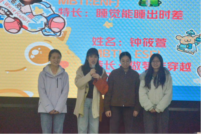 在风采展示环节,参赛选手们各展所长,精彩纷呈。有的团队以成员的MBTI性格类型和专长特点为灵感进行命名,既生动有趣又彰显个性;有的团队通过巧妙组合心理网络热词进行自我描述,创意十足,令人耳目一新。各参赛团队将活动主题与成员特色深度融合,充分展现了他们对心理知识的深刻理解和灵活运用。