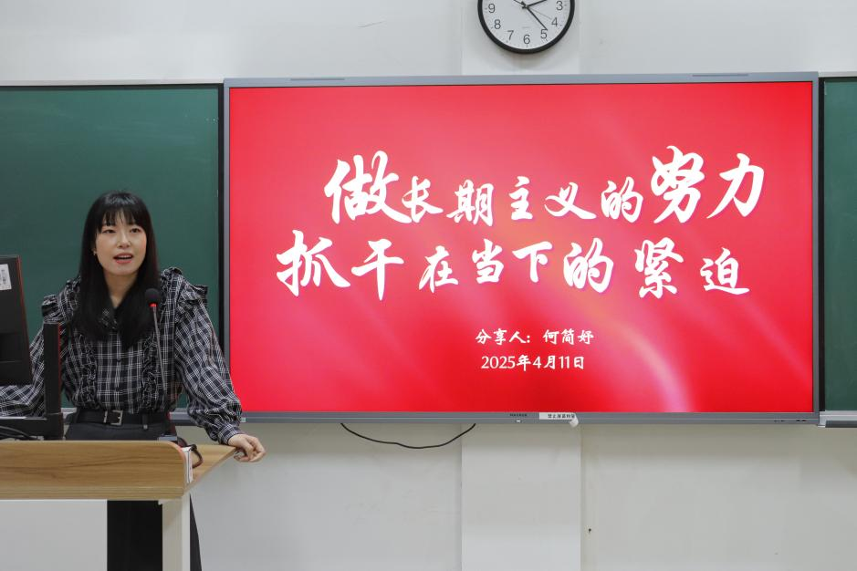 何简妤分享了自身的职业选择与成长心得。她提出“以学生心态学习,以成人逻辑做事”,强调在快速变化的环境中应保持持续学习的状态,同时以成熟思维应对职场挑战。面对就业环境的不确定性,她建议“多做进步的事,多做具体的事”,通过扎实积累和行动,在基层岗位锤炼能力,为长期发展筑牢根基。她激励同学们积极拥抱变化,在实践中探索职业道路。