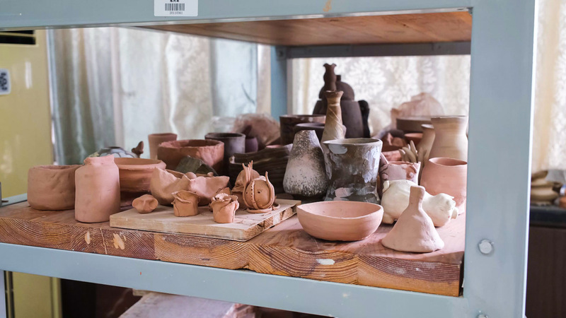 紧接着,同学们开启了妙趣横生的陶艺实验室参观之旅。实验室不仅配备了多媒体教学设备,更陈列着专业的练泥机、泥条成型机等陶艺制作器械。尤其引人注目的是展陈区内琳琅满目的优秀陶艺作品,其精巧的造型与细腻的工艺,引得同学们纷纷驻足赞叹,连连称奇。