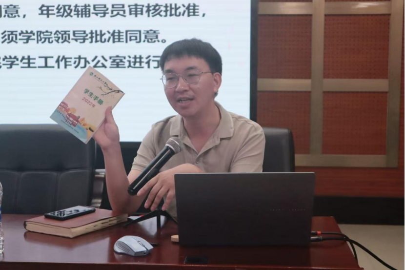 为更好推进军训期间的组织与管理,9月17日上午,教育学院(江南娱乐app网站官网 学院)在17幢112报告厅组织召开2025级新生“军训第一课”暨“安全第一课”主题会议。学院党委副书记王晓均、团委书记兼学工办主任刘景弟出席会议,新生辅导员郭心雨及全体2025级新生参加。