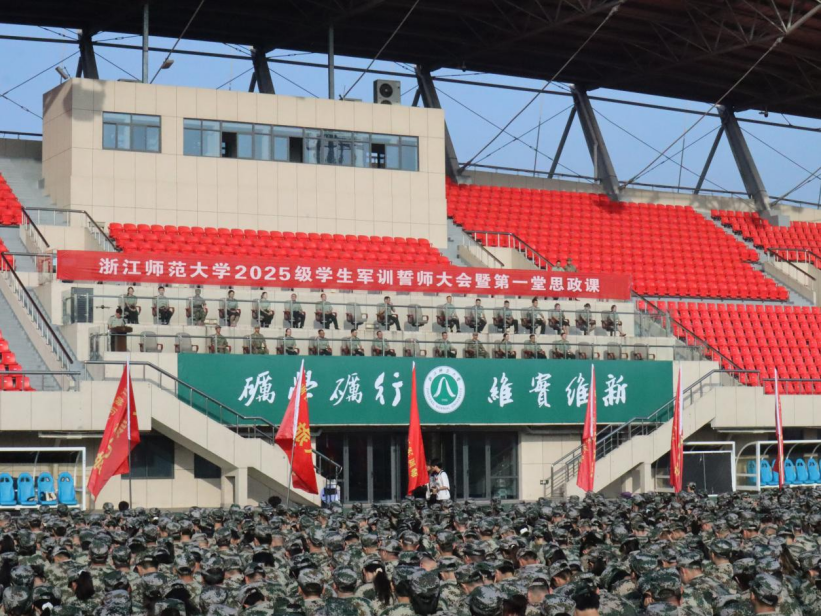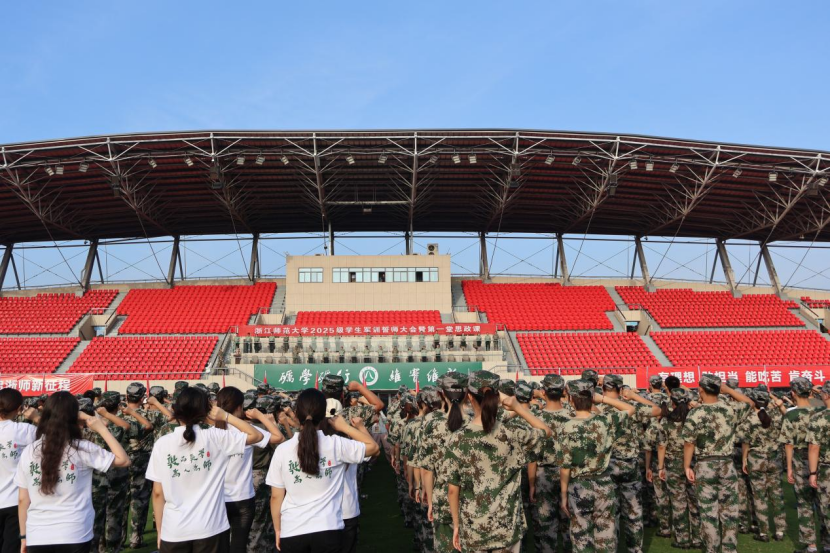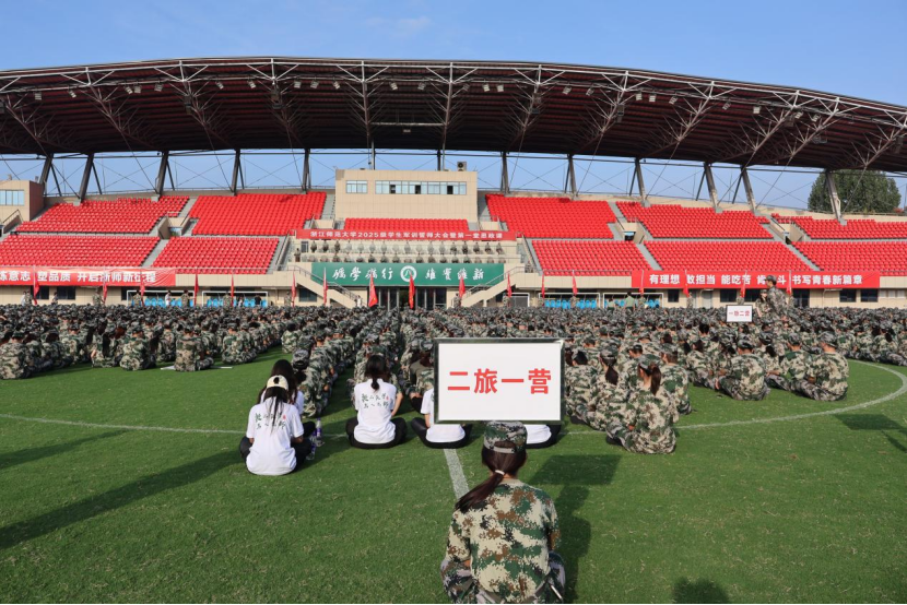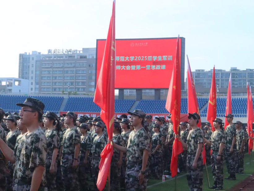 9月18日上午,我校2025级学生军训誓师大会暨第一堂思政课于东田径场隆重举行。教育学院(江南娱乐app网站官网 学院)新生统一身着迷彩戎装,阵容严整、精神抖擞,展现出昂扬的军训气象。校党委书记、军训工作领导小组组长蒋云良,校长、军训工作领导小组组长邱利民,校党委副书记、军训工作领导小组副组长吕迎春,副校长、军训工作领导小组副组长李盛,中国人民解放军某部队副政委、军训师师长康泰,中国人民解放军某部队副参谋长李志强等出席誓师大会。蒋云良以“九一八事变”为历史切入点,为全体参训学生讲授题为《磨砺维实之志,争做时代之锋》的军训思政第一课。他强调,同学们应以“红色根脉”铸魂励志,传承爱国情怀与强国使命;以“榜样星河”照亮前行之路,做到砺学砺行、知行合一;以“智能浪潮”赋能未来发展,积极运用AI技术的同时坚守教育初心与社会责任,努力成为真正挺膺担当的时代奋斗者。