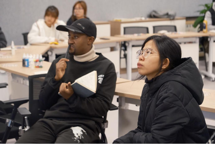 活动伊始,主持人带领同学们漫溯泥塑艺术的千年历史。从新石器时代粗糙质朴的原始泥陶,到汉唐宋明清各具风采的经典佳作,泥塑作为中华民族重要的民间工艺,承载着深厚的文化底蕴与独特的人文温度。在场的中外学子凝神聆听、深受触动。