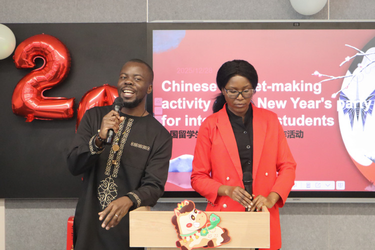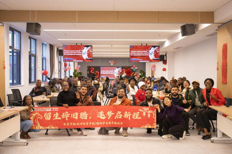 学院)国际学生新年联欢会温情启幕。来自五湖四海的国际学子欢聚一堂,以文会友,以乐传情,在浓郁的中国年味中辞旧迎新,共话未来。学院比较教育学硕士项目负责人徐倩、国际学生辅导员刘颖出席联欢会。