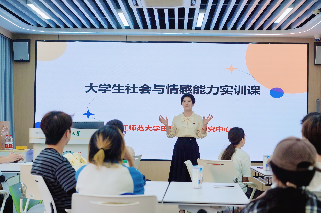 2025年9月16日下午,浙江师范大学田家炳德育研究中心(以下简称“中心”)面向全校本科专业学生精心打造的公共通识类课程——《大学生社会与情感能力实训课》第一课,在校文科实训中心303教室顺利开讲。