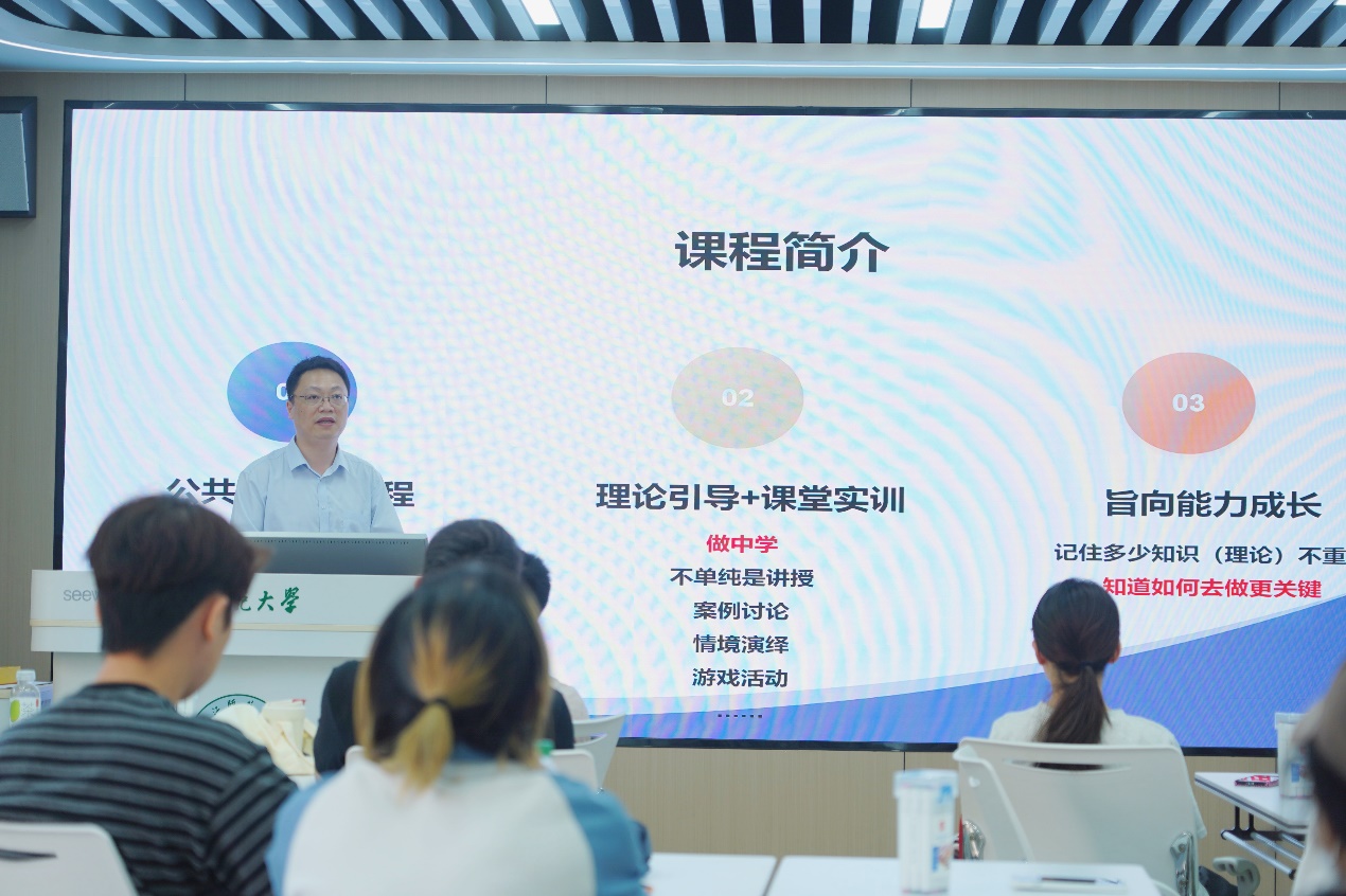 中心办公室主任彭年强对课程实施细节进行全面解读。他明确指出,本课程打破传统理论考核模式,不侧重知识点的机械识记,核心目标是教会学生运用多元有效方法,自主培养与提升社会与情感能力。在课程形式上,将采用“理论引导+课堂实训”的双轨模式,通过案例深度研讨、真实情境演绎、互动游戏体验等丰富载体,真正实现“做中学”“学中悟”的教学效果。解读结束后,彭年强现场组织学生完成课程小组分组与团队建设,为后续实训环节的开展奠定了坚实基础。