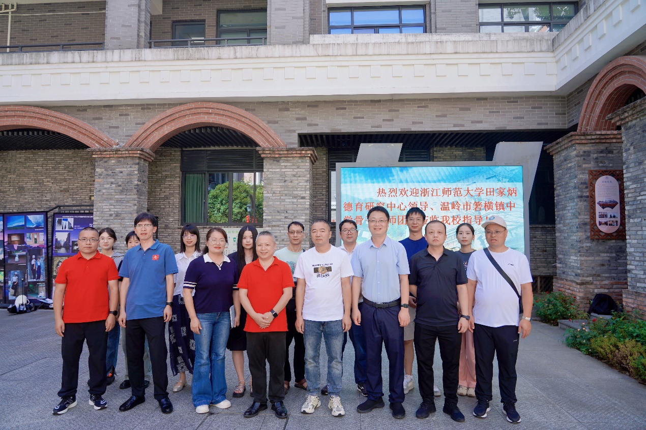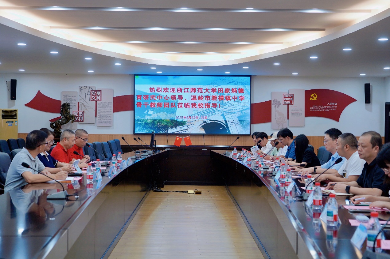 2025年9月18日至19日,浙江师范大学田家炳德育研究中心(以下简称“中心”)组织项目校——温岭市箬横镇中学(以下简称“箬横镇中”)骨干教师团队赴基地校——温州市第八中学(以下简称“温州八中”)开展学习交流活动。箬横镇中书记杨正善、副校长赵伟、教科主任陈刚、德育主任李灵荣、总务主任张晓明、校办副主任王小勇、教务副主任兼教研组长郭灵红、德育副主任叶杨杨、教研组长章巧巧、备课组长颜慧瑜以及教师王亚妮、陈珍珍参加了本次活动。中心办公室主任彭年强、秘书范可越全程陪同。