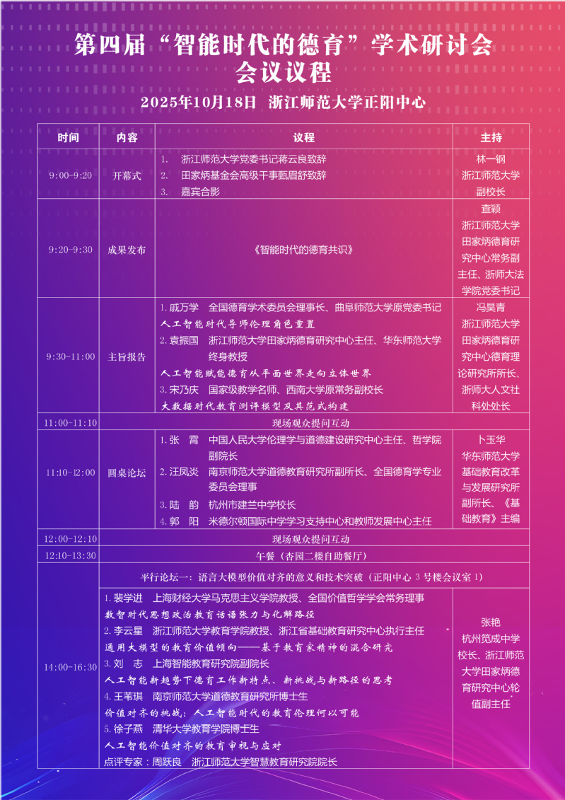 议程发布丨第四届“智能时代的德育”学术研讨会