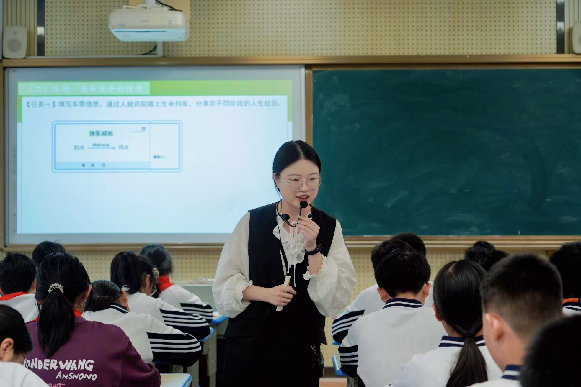 我以“生命列车”作为核心意象贯穿全程。课堂从列车播报乘车音频开始,学生们拿到车票,搭载这趟生命列车开启旅程。通过完成一个个任务——填写车票信息、分享人生经历、梳理社会关系、绘制《生命彩虹图》、开展辩论赛等,逐步认识生命的特质,学会如何热爱生命、追求生命的高度。在辩论赛中,学生们认识到生命在“代际接续”与“精神传承”中的价值,实现了认知的跨越。任务设置由简到难,引导学生深入思考,拓展思维深度。最后以列车到达箬横镇中学的播报收尾,寓意学生开启新一站的生命旅途。本课将知识融入生活场景,将价值观引导嵌入任务,课堂主线清晰,也充分体现了核心素养目标的培养。